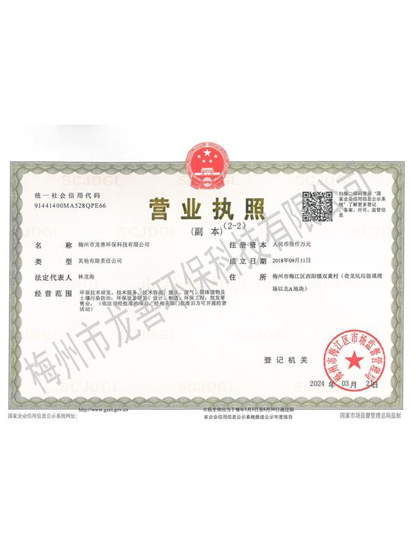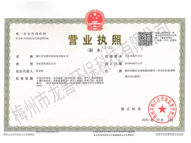 梅州市龍善環(huán)保科技有限公司為龍善環(huán)保股份有限公司(簡稱“龍善環(huán)?!保┳庸?。龍善環(huán)保于1995年12月成立,注冊資本為人民幣6,000萬元,總部位于深圳市南山區(qū)月亮灣大道2078號兆龍大樓16層。公司經(jīng)生態(tài)環(huán)境部、廣東省生態(tài)環(huán)境廳、深圳市生態(tài)環(huán)境局、深圳市交通運輸委員會、深圳海事局等部門許可專業(yè)從事陸地和海洋環(huán)境保護產(chǎn)業(yè)的高科技民營企業(yè),主要經(jīng)營業(yè)務(wù)包括工業(yè)廢物收運、資源化利用和無害化處理處置、海洋船舶污油水接收和集中處理處置、突發(fā)環(huán)境事故清污應(yīng)急處置等......